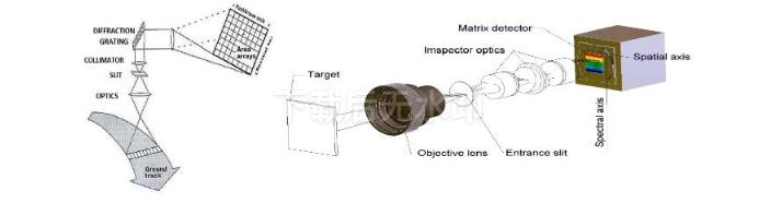 Specim高光譜相機(jī)采用的是面陣探測(cè)器,探測(cè)器自身垂直于運(yùn)動(dòng)方向掃描,獲得一維線視場(chǎng)的空間信息,并利用機(jī)械運(yùn)動(dòng)完成沿軌方向掃描實(shí)現(xiàn)二維空間信息的獲取,同時(shí)線視場(chǎng)的光譜信息在面陣探測(cè)器的第二維獲得。