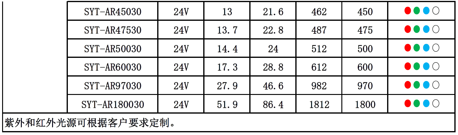 SYT-AR環(huán)形光源系列 SYT - AR ## ## - R/G/B/W/IR/UV 公司名 種類 直徑 角度 顏色