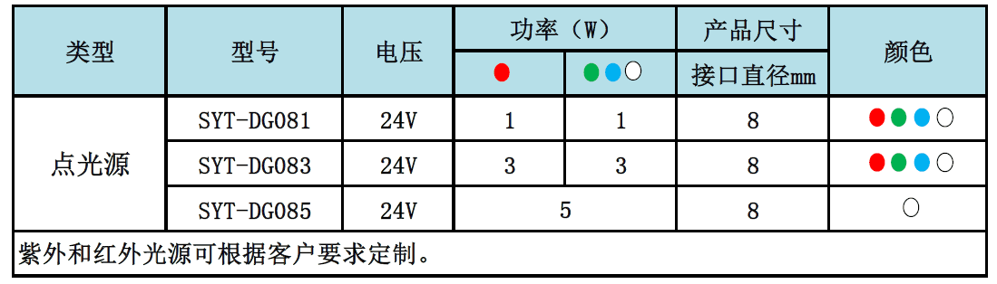 SYT-DG環(huán)形光源系列 SYT - DG ## ## - R/G/B/W/IR/UV 公司名 種類 直徑 角度 顏色